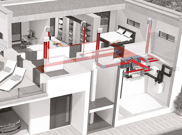Die vorgewärmte, fein gefilterte Frischluft wird über das ValloFlex Luftverteilsystem zu den Räumen transportiert. ValloFlex Zuluftventile geben diese frische, vortemperierte Luft bedarfsgerecht und zugfrei an Räume wie z.B. Wohn-, Schlaf-, Kinder- und Arbeitszimmer ab.