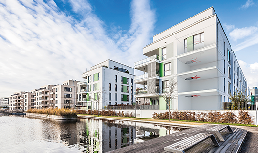 Das Projekt „Tanzende Siedlung“, ein Ensemble aus vier Wohngebäuden mit hochmoderner Lüftungstechnik.